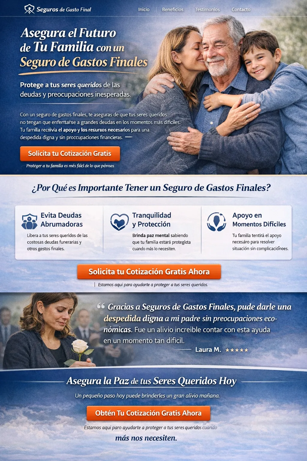 “Cuando mi padre falleció, gracias a su seguro pudimos despedirlo con dignidad sin preocuparnos por los gastos. Fue un alivio enorme en un momento muy difícil.”